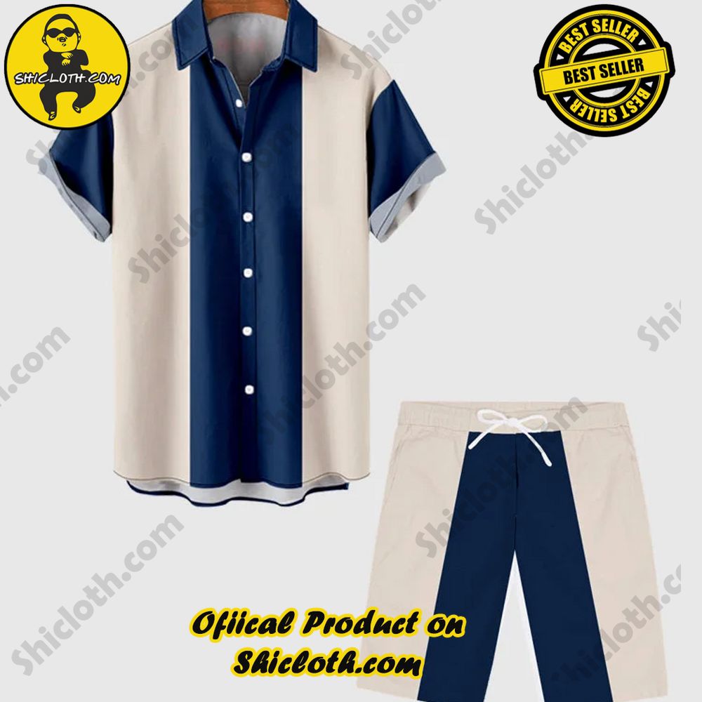 1960s Blue and White Printing Men’s Short Sleeve Shirt