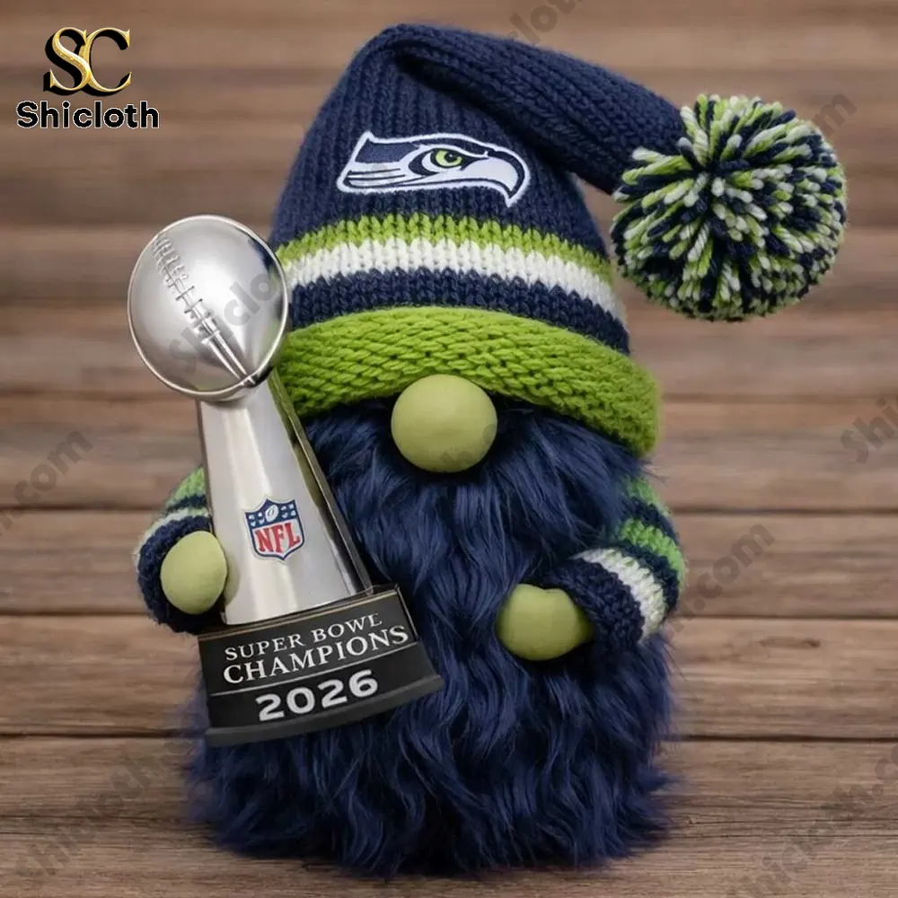 The 2026 Seattle Seahawks Championship Gnome is a handcrafted tribute to victory, blending team spirit with a cozy, artisanal feel. This unique collectible features a plush, bearded gnome clad in the iconic navy, lime green, and white team colors, holding a detailed replica of the Super Bowl trophy to celebrate the 2026 win.