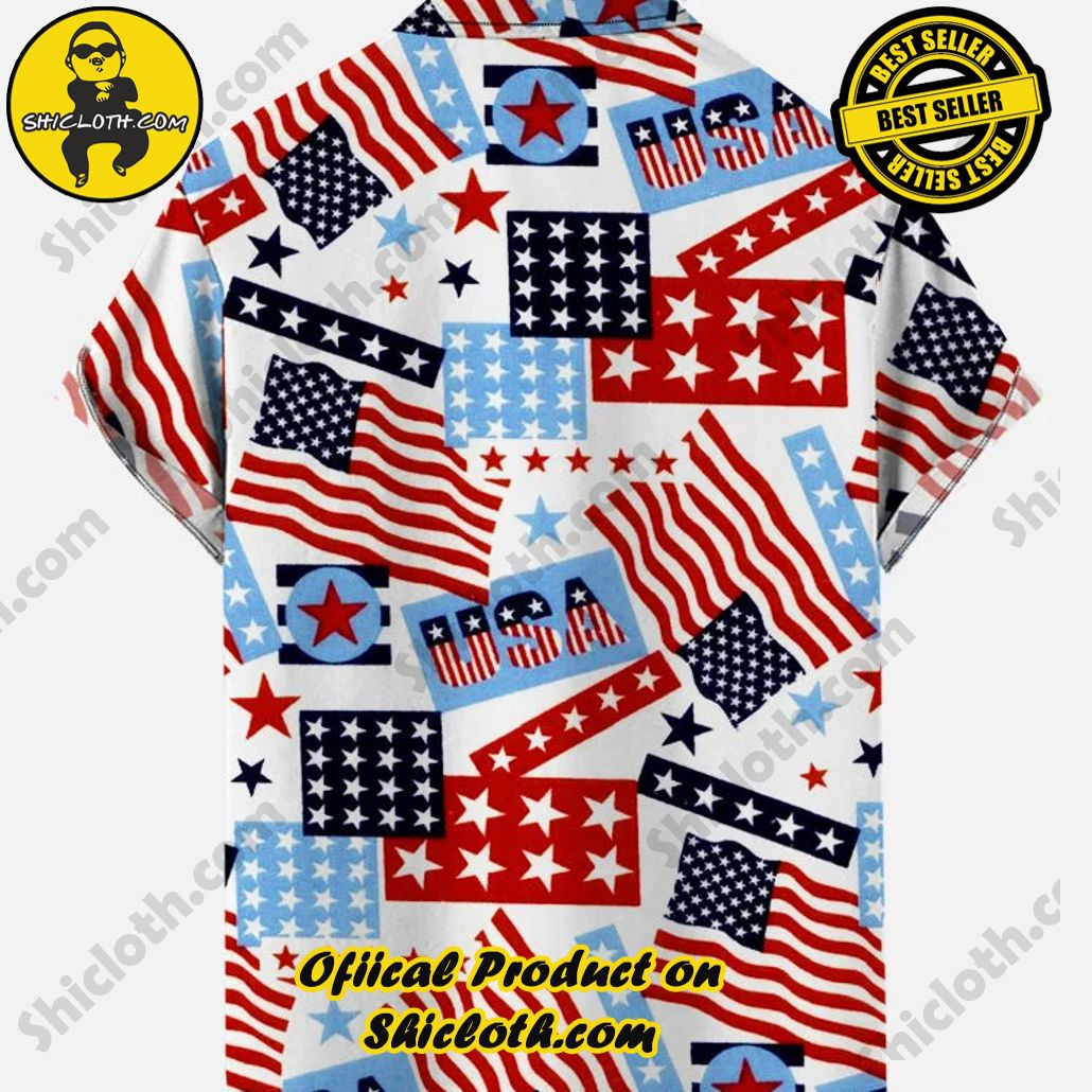 4th Of July American Stars And Stripes Flag Printing Short Sleeve Shirt