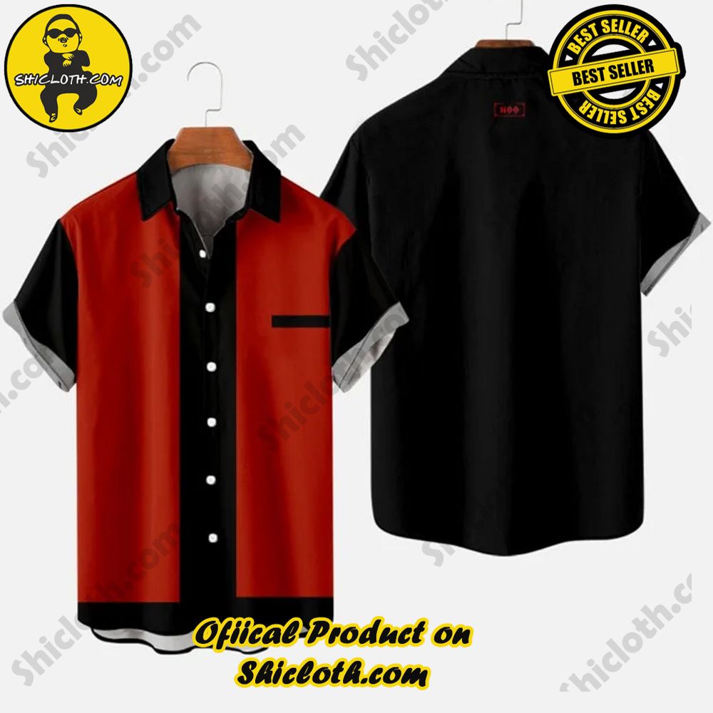 50s Red & Black Stitching Men’s Short Sleeve Shirt