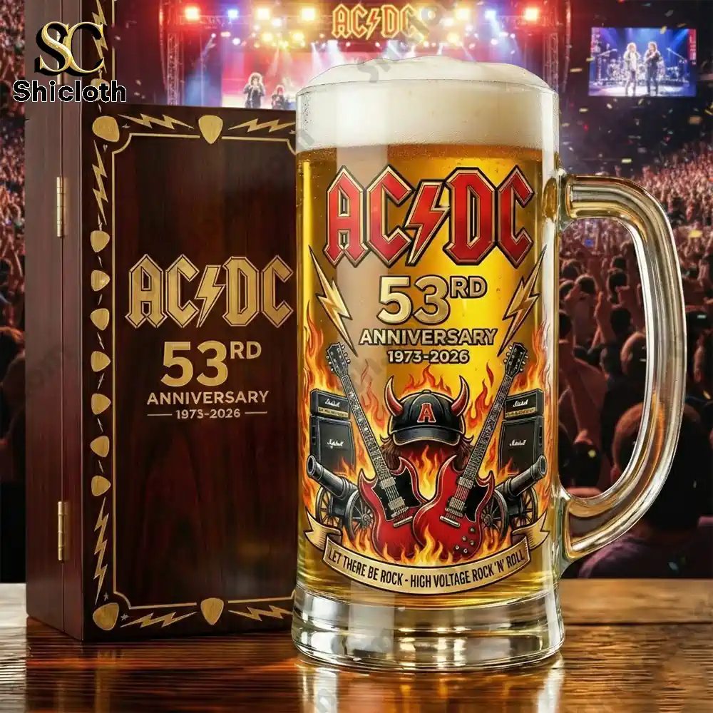 This limited-edition AC/DC 53rd Anniversary beer glass is the ultimate tribute to over five decades of high-voltage rock ‘n’ roll. Featuring a stunning wrap-around design that celebrates the band’s legacy from 1973 to 2026, it is a must-have for fans who want to enjoy their favorite brew while honoring the kings of hard rock.