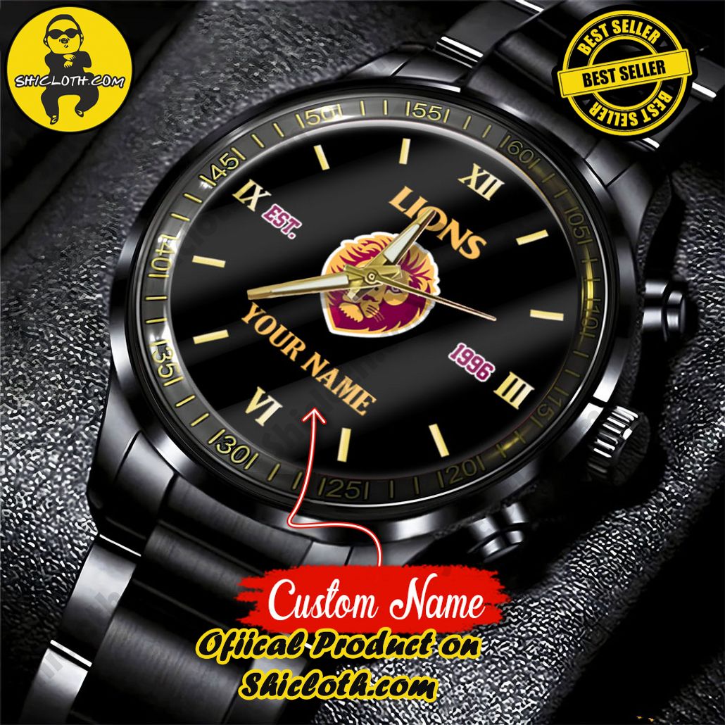 Introducing the AFL Brisbane Lions Custom Name Stainless Steel Watch, the perfect accessory for any devoted Lions fan. This timepiece not only keeps you punctual but also proudly showcases your allegiance to the mighty Brisbane Lions. Crafted from premium stainless steel, the watch exudes durability and sophistication. Personalize it with your name or a special message, creating a truly unique piece. Imagine the admiration you’ll receive as you wear this watch to every outing, gathering with friends, or during your daily routine. Its sleek design and vibrant Lions colors will make a statement wherever you go, reminding you of the passion and camaraderie that unite the Lions faithful. With the AFL Brisbane Lions Custom Name Stainless Steel Watch, you’ll not only keep track of time but also carry a piece of Lions pride with you every step of the way.