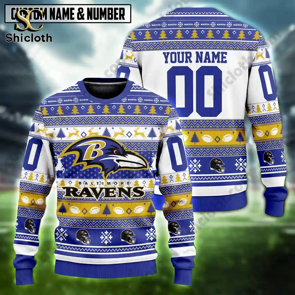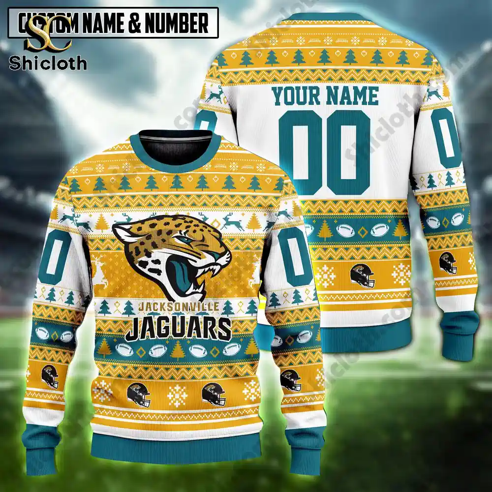 Each sweater is a canvas of festive fun. You’ll find your team’s main logo prominently displayed on the front, surrounded by charming Christmas iconography like reindeer, snowflakes, Christmas trees, and mini football helmets, all knitted into a traditional “ugly Christmas sweater” pattern. The back is where the real personalization happens: a bold, white panel features “YOUR NAME” and the number “00” (which you can customize), giving it that authentic jersey feel. The main body color and accent colors are a perfect match for your chosen team (think Bills’ red/blue/white, Chargers’ blue/yellow/white, Packers’ green/yellow/white), making the entire garment a vibrant, eye-catching piece of fan gear. Plus, the lightweight fabric ensures you get everyday comfort, and it’s fantastic for layering under a jacket or blazer.