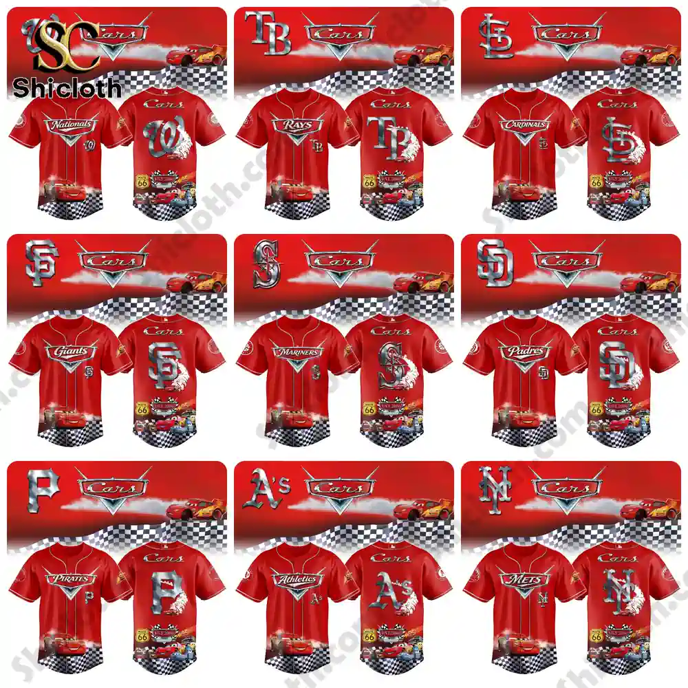 The All Team MLB x Special Cars 20th Anniversary Limited Edition Jersey is the ultimate crossover for fans who love the diamond and the racetrack. This collection features a vibrant red base inspired by Lightning McQueen, blending iconic MLB team logos with the high-octane aesthetic of the Disney Pixar Cars franchise. Whether you are rooting for the Red Sox, Cubs, or Reds, each jersey is packed with intricate details like 3D-style metallic team emblems, racing checkers, and the legendary “95” decals, making it a standout piece for collectors and casual fans alike.