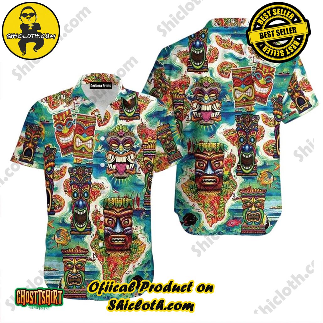 Best Places to Buy Amazing Tiki Tiki Can?t You See Green Blue Aloha Hawaiian Shirt Beach Short Online: