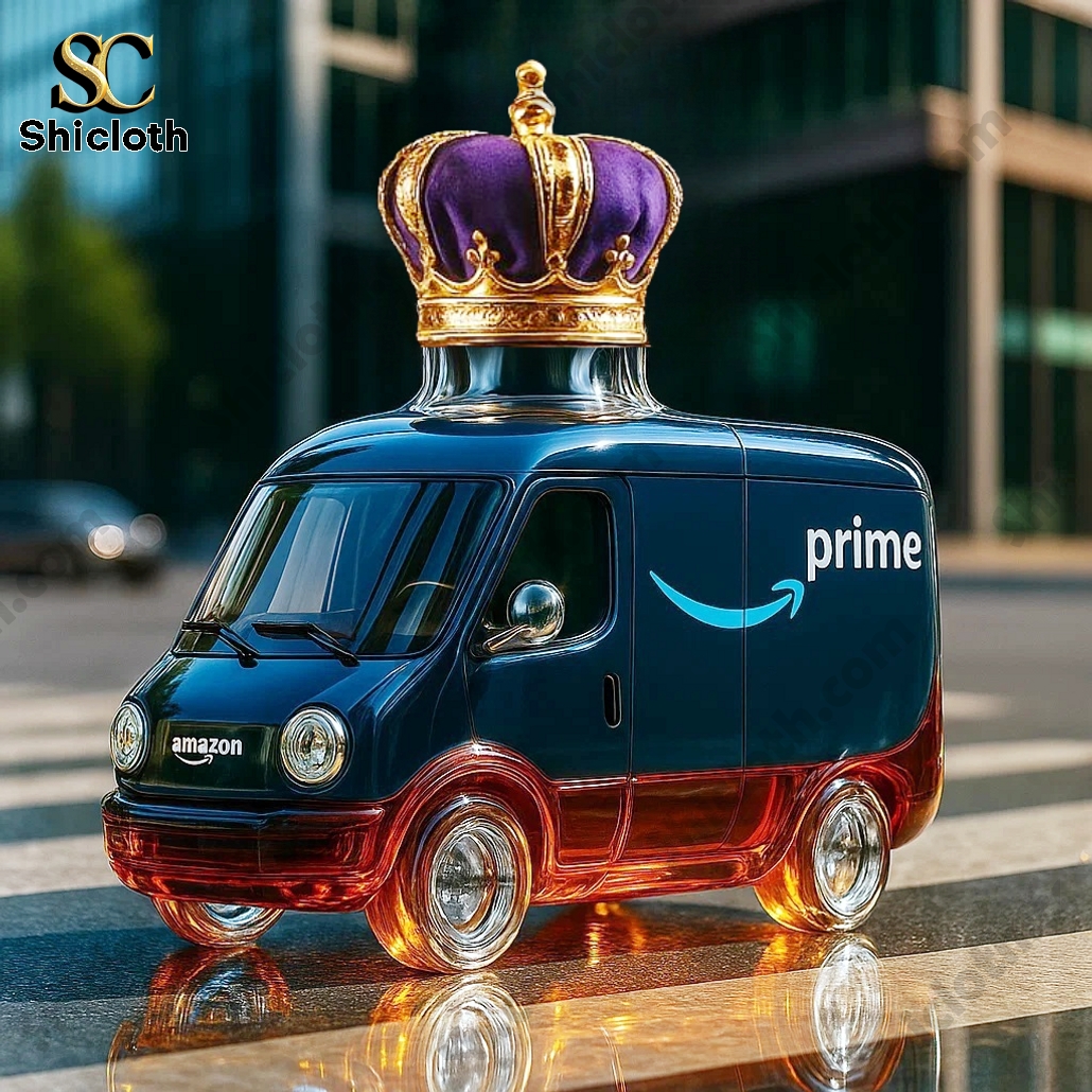 The Amazon Prime Truck Whiskey Bottle is a creative and fun collectible that turns the familiar shape of a delivery truck into a functional bottle. This product comes in four unique styles, each featuring a different bottle cap design inspired by popular whiskey brands like Crown Royal, Jack Daniel’s, Blanton’s, and Maker’s Mark. The bottle has a deep navy blue body, complete with the Amazon and Prime logos, detailed windows, rounded headlights, chrome-look mirrors, and realistic wheel designs. The lower half is transparent amber-toned glass that mimics the look of whiskey, adding contrast and visual appeal.