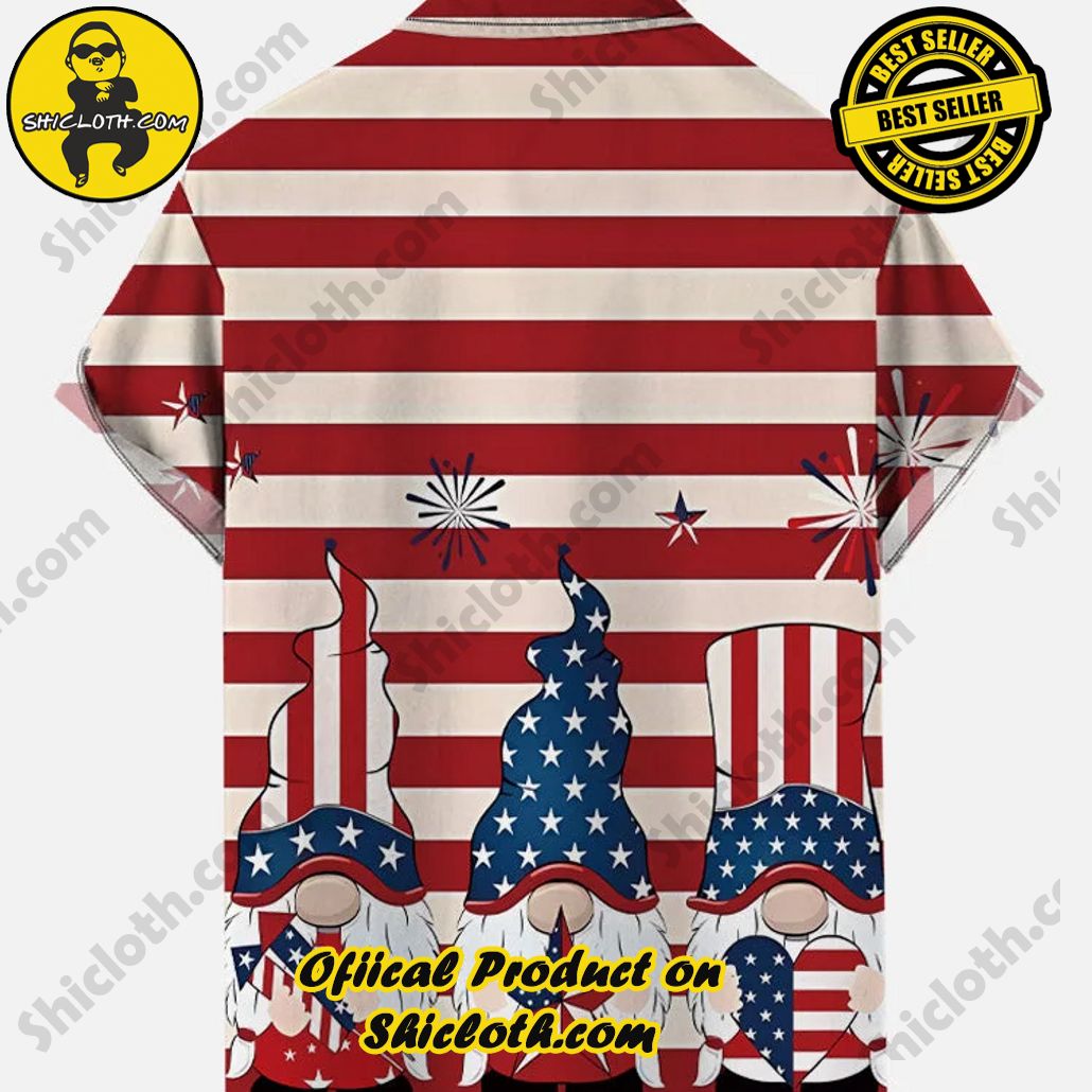 American Gnomes With Stars Red Stripes Printing Short Sleeve Shirt