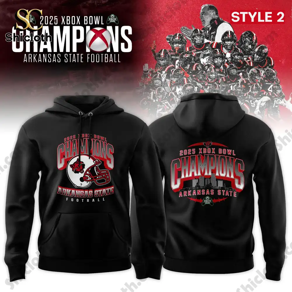 Celebrate a historic victory for Arkansas State Football with the Arkansas State Red Wolves Champions Xbox Bowl 2025 Hoodie. This commemorative collection features two distinct styles that capture the energy of the win, offering a high-quality blend of fan pride and everyday comfort for the whole family. Whether you prefer the classic Red (Style 1) or the sleek Black (Style 2), these hoodies are designed to keep you warm while showcasing the Red Wolves’ championship status.
