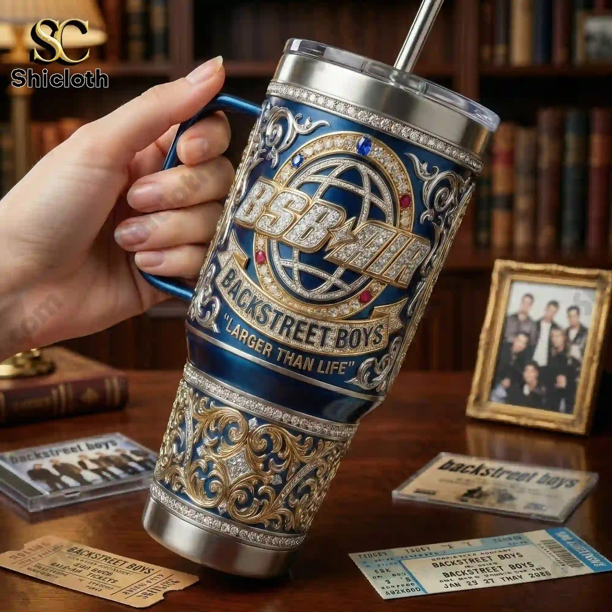 If you are looking for a way to show off your love for 90s pop royalty while staying hydrated, the Backstreet Boys Larger Than Life 40oz Tumbler is the ultimate accessory. This premium drinkware combines a regal, deep navy blue aesthetic with intricate gold filigree and jewel-toned accents, making it feel more like a collector’s item than a standard water bottle. Whether you are a lifelong fan or just appreciate a bold, “Larger Than Life” design, this tumbler offers a perfect blend of nostalgia and high-end style.