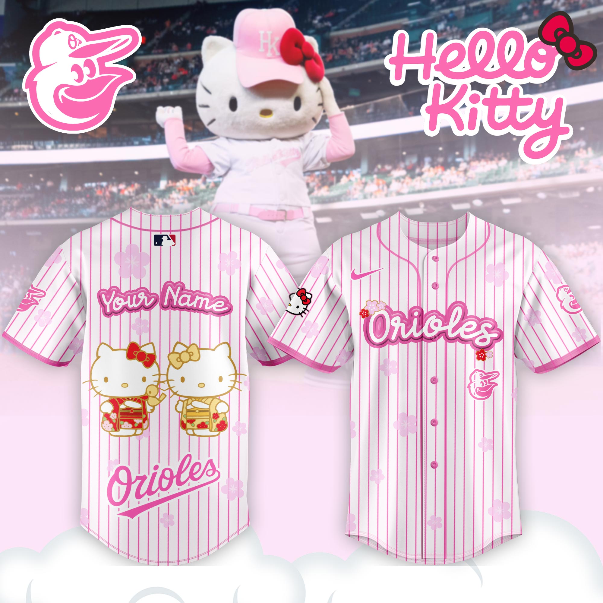 Baltimore Orioles Hello Kitty Happy Girls Day Baseball Jersey and Hoodie