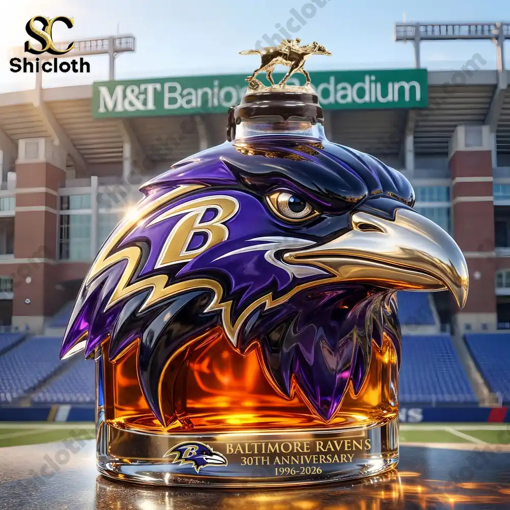 This decanter is the ideal choice for birthdays, housewarmings, or celebrating a Ravens victory. It pairs perfectly with a set of crystal tumblers and looks best when displayed under warm LED lighting to highlight the sculpted purple gradients. Choosing Shicloth Shop means opting for reliability; we take pride in our rigorous quality checks and secure packaging to ensure your commemorative piece arrives in showroom condition. Our expertise in sports memorabilia ensures that every detail, from the logo placement to the glass clarity, meets the standards of a true Ravens enthusiast.