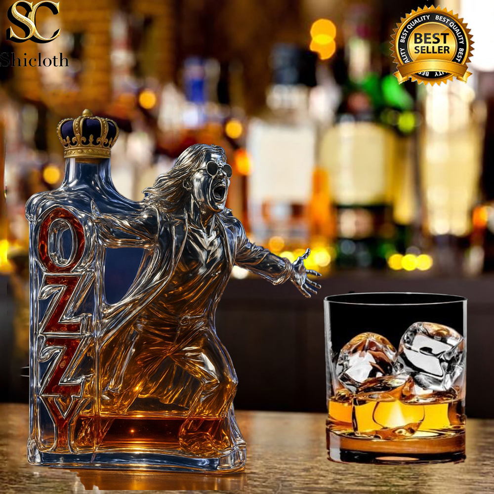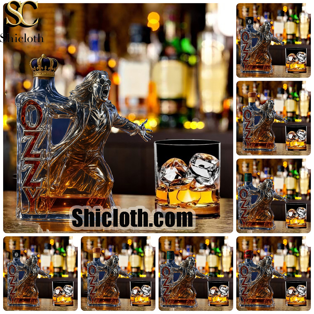 The product you’re introducing is a uniquely designed whiskey bottle that doubles as a collector’s item and a functional piece of decor. Inspired by rock legend Ozzy Osbourne, this bottle comes in a sleek, eye-catching design featuring Ozzy’s iconic pose and style, with vibrant colors and intricate details. There are several styles, each showcasing a different, exclusive cap design. Some feature Crown Royal’s signature crown-shaped cap, while others have the Blanton’s horse cap, the Jack Daniel’s black cap, the Jameson green cap, and the Maker’s Mark red cap, adding a touch of personal flair depending on your favorite brand. This whiskey bottle is not just for storing your favorite beverages—it’s a conversation starter, a display piece, and a thoughtful gift for any whiskey lover or collector.