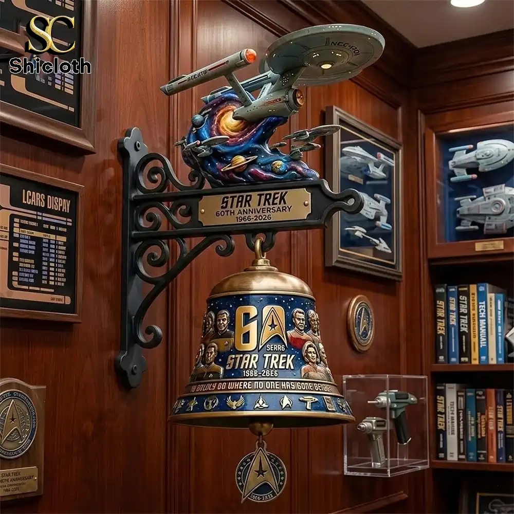 This piece is designed specifically for the veteran fan who appreciates the “Classic Style” of the 22nd-century aesthetic blended with traditional home decor. To maintain its pristine condition, simply wipe the resin components with a damp cloth; the washable, fade-resistant finish handles maintenance with ease. When mounting, ensure you utilize the pre-drilled holes for a secure fit against brick or wood paneling to support the weight of the cast iron assembly. Choosing this bell means investing in a piece that bridges the gap between functional hardware and fine art. At Shicloth Shop, we pride ourselves on absolute reliability, ensuring every shipment is handled with the care a Starfleet flagship deserves.