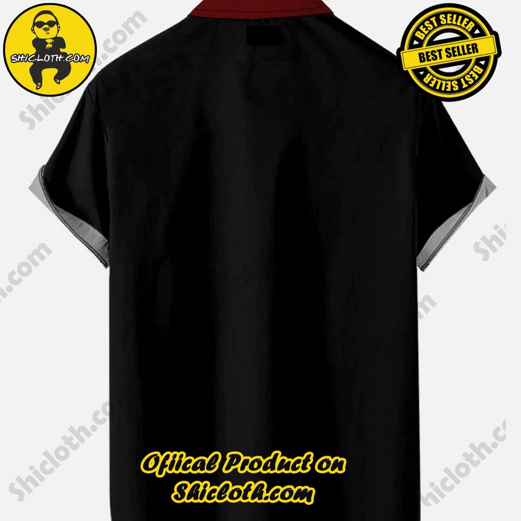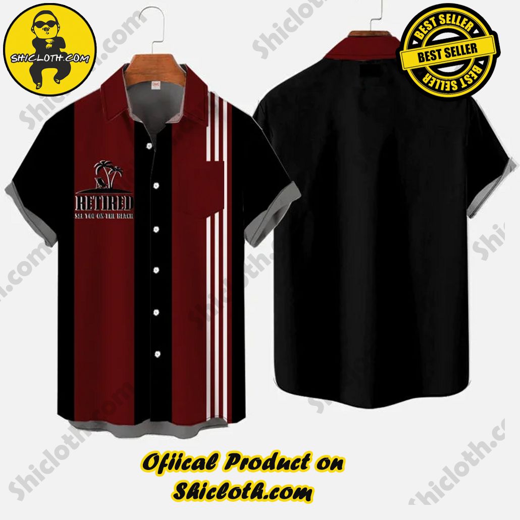 Black and Red Stripes Contrasting Color And Retirement Vacation Beach Printing Breast Pocket Short Sleeve Shirt