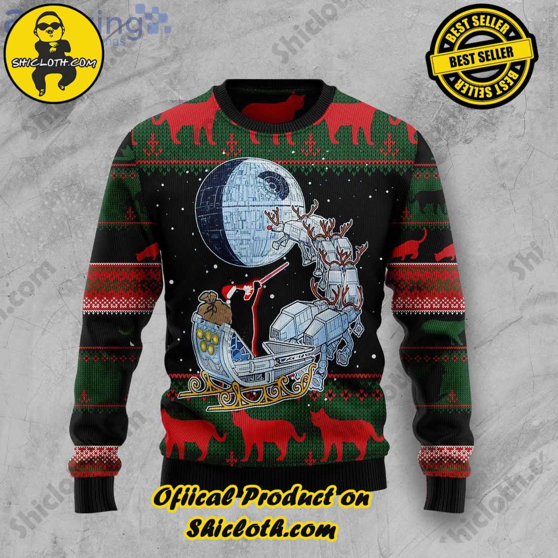 Black Cat Sleigh To Death Star Cat Lover Ugly Christmas Sweater