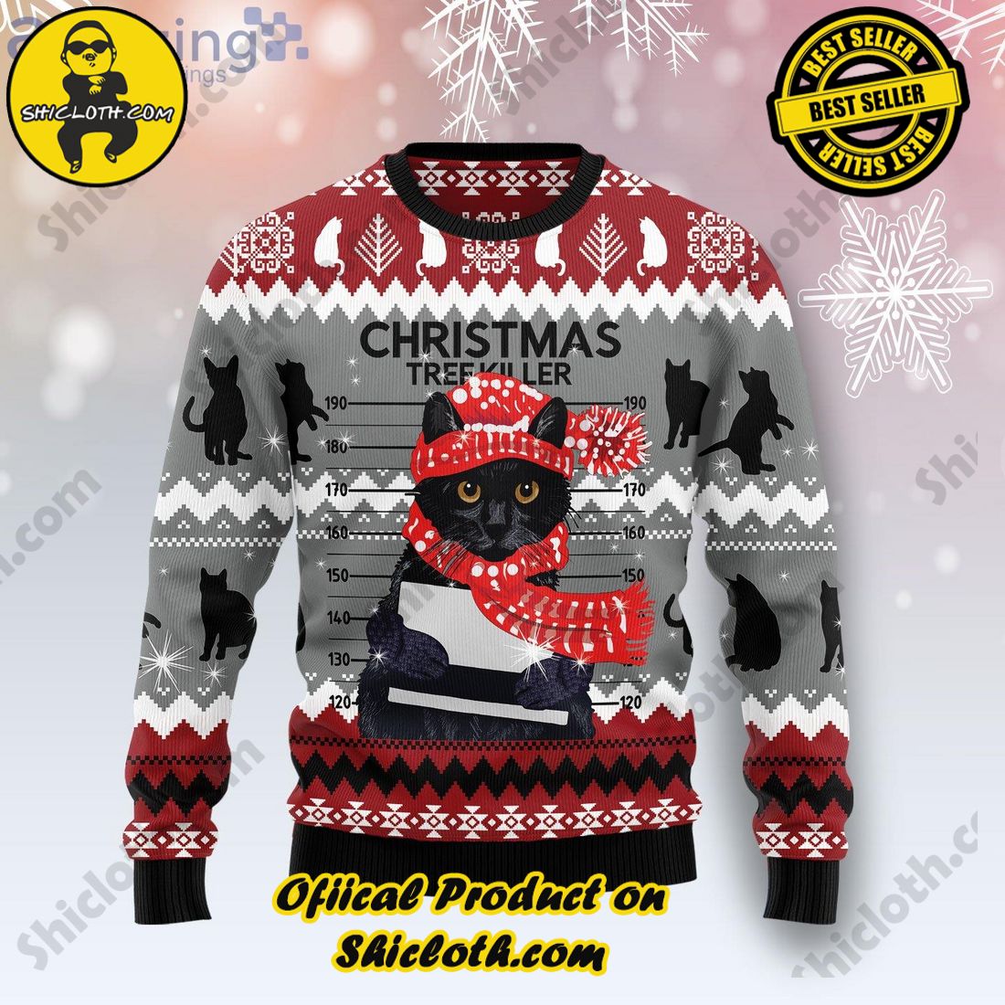 Black Cat Tree Killer Cute Gift Ugly Christmas Sweater