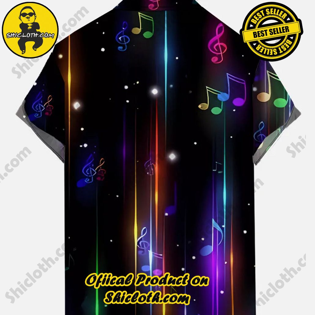 Black Gradient Starry Sky Neon Lights And Notes Printing Short Sleeve Shirt