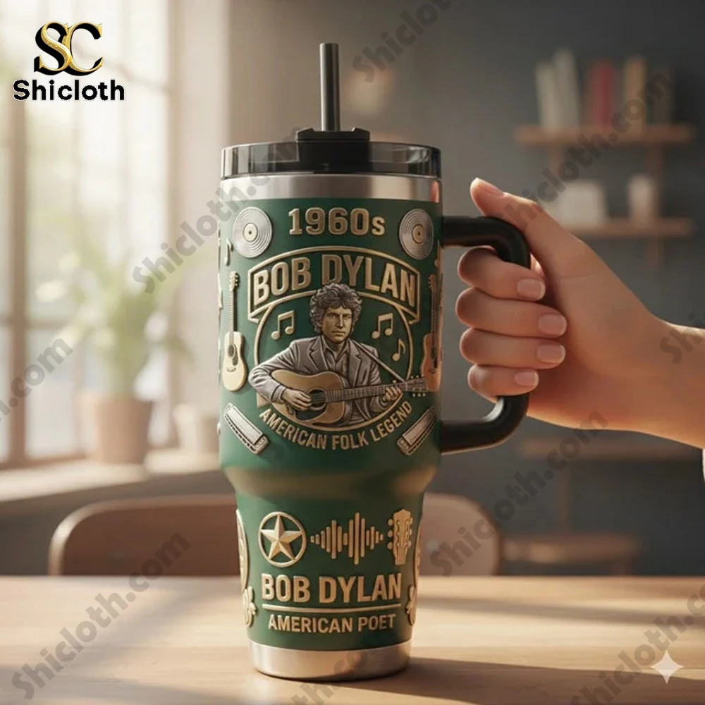 This Bob Dylan 1960s American Folk Legend Tumbler Cup is a perfect blend of vintage musical soul and modern utility. Whether you are a lifelong fan of the “American Poet” or just love a high-quality drink container, this forest green tumbler stands out with its intricate 3D-embossed details and premium stainless steel build.