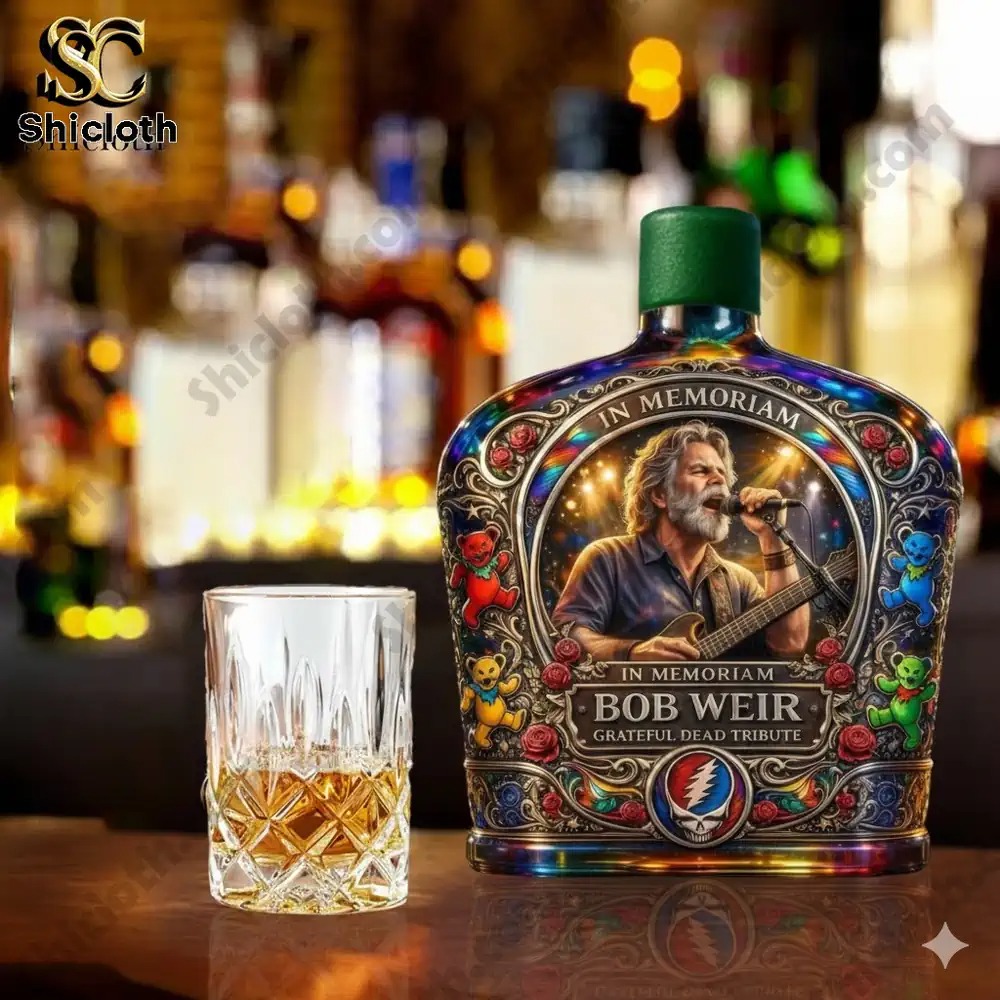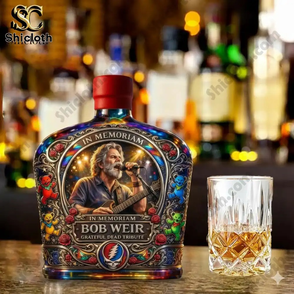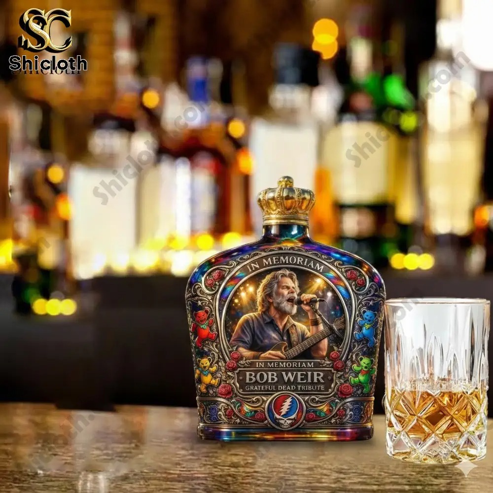 The Bob Weir Grateful Dead Tribute Whisky Decanter is a stunning fusion of rock history and premium barware, designed specifically for fans who want to honor the legacy of a musical icon. This custom-shaped glass decanter features a vibrant, psychedelic aesthetic that mirrors the Grateful Dead’s legendary vibe, making it a functional piece of art for any home bar. Whether you are pouring a glass of fine bourbon or displaying it as a center-piece, this decanter brings a touch of “Deadhead” soul to your drinking experience.