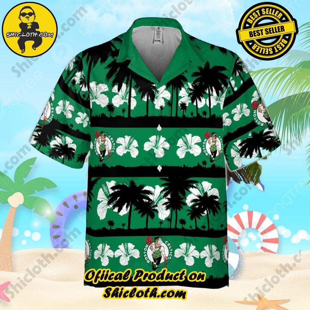 Information of Boston Celtics White Hibiscus Flower On Green Background Print Hawaiian Shirt: