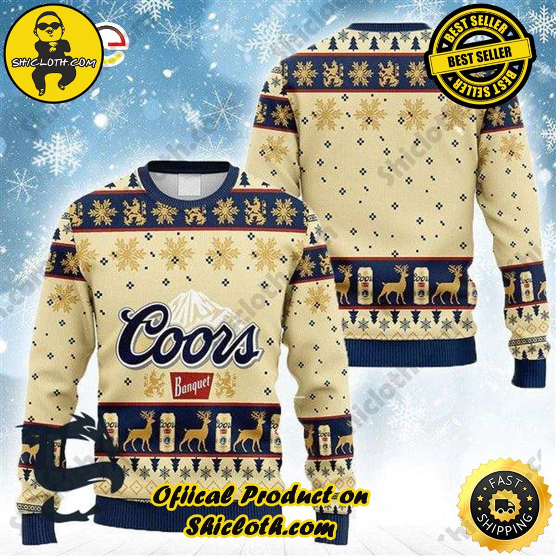 This Christmas-themed sweater showcases the iconic Coors Banquet logo, surrounded by whimsical snowflakes and reindeer. Its eye-catching design is certain to turn heads at any holiday gathering or ugly sweater party. Whether you’re sipping Coors by the fireplace or enjoying festive activities with loved ones, the Coors Banquet Christmas Ugly Beer Sweater ensures you’ll be the center of attention in the most fashionable way possible.