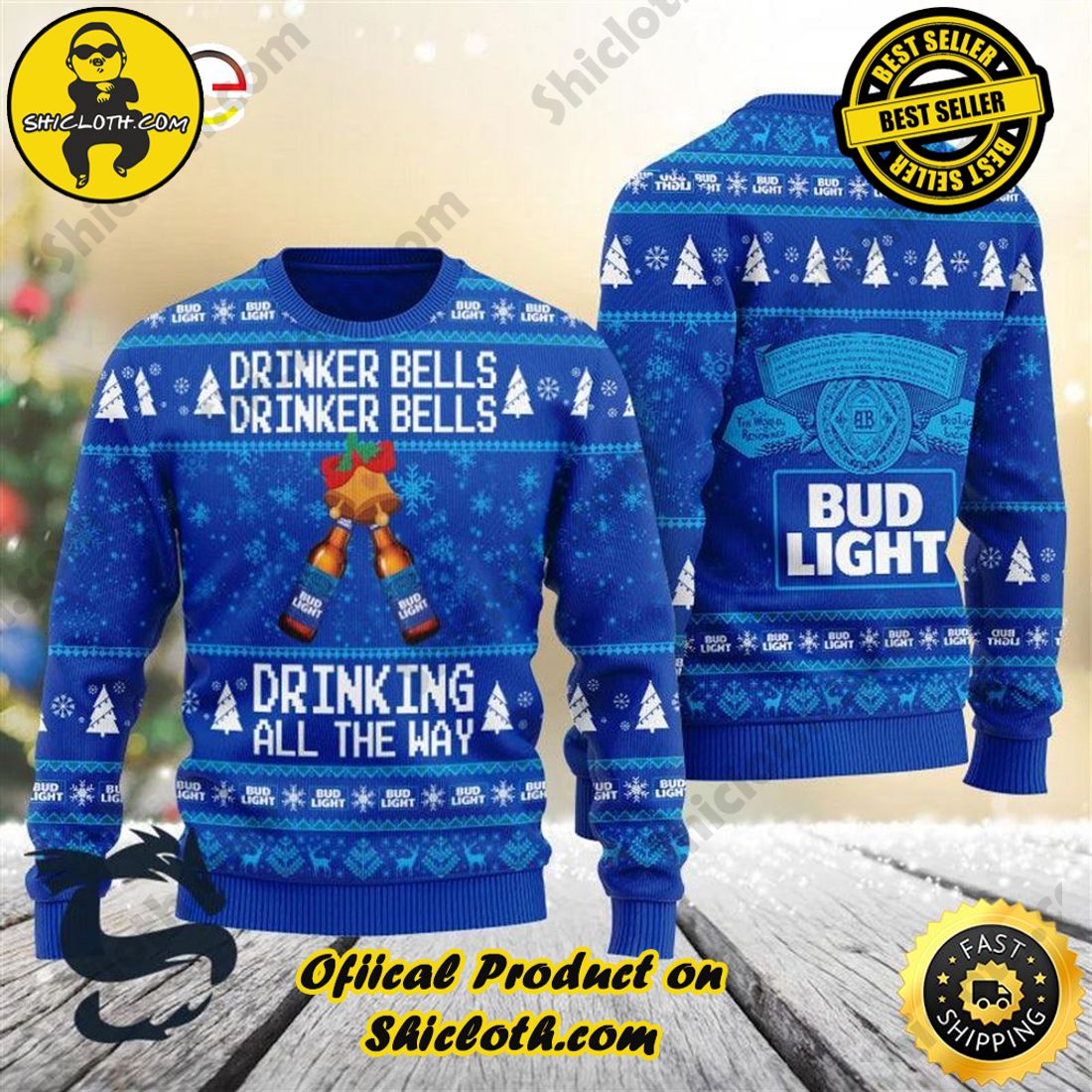 Bud Light Drinker Bells Drinking All The Way Christmas Ugly Beer Sweater