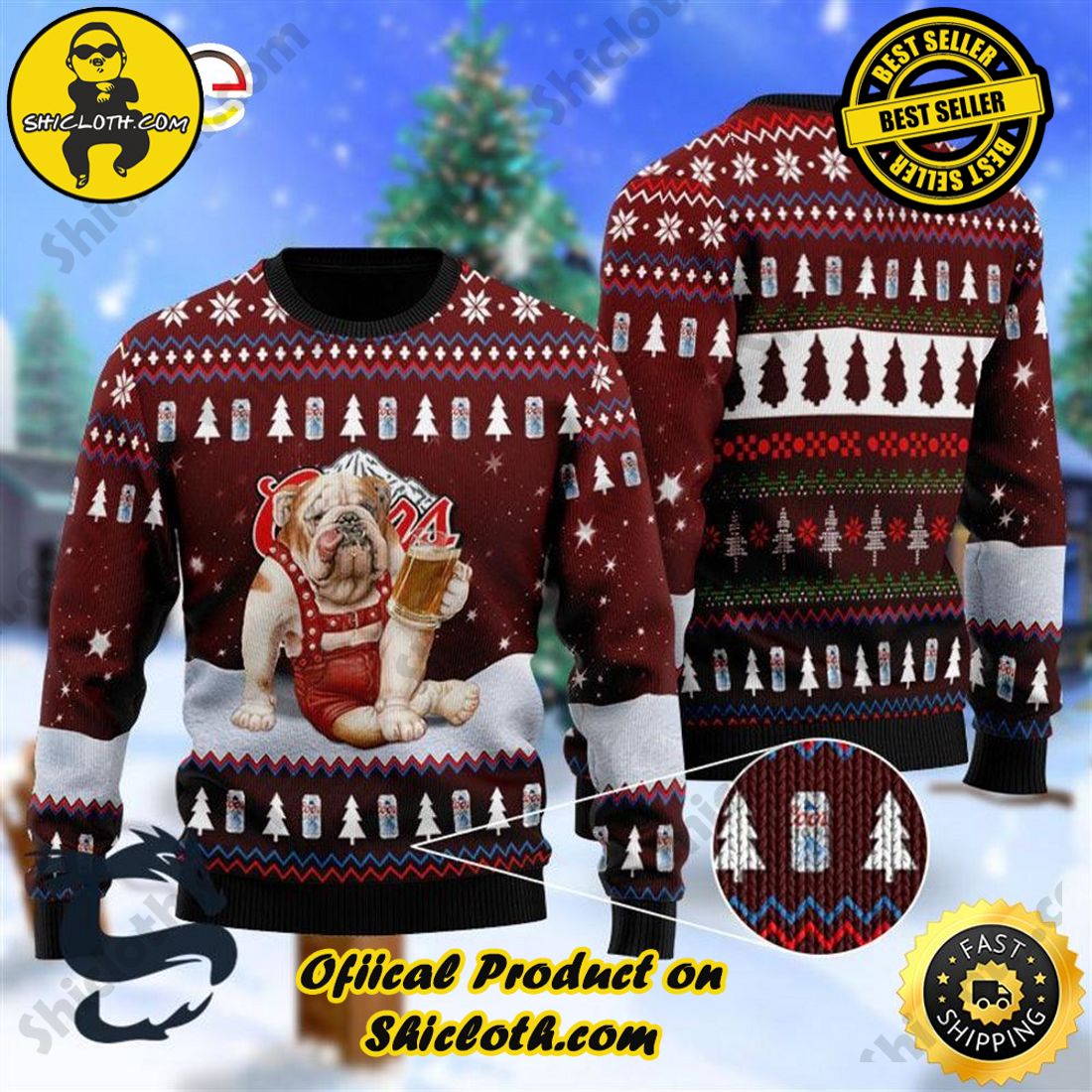Bulldog Drink Coors Light Beer Christmas Beer Sweater