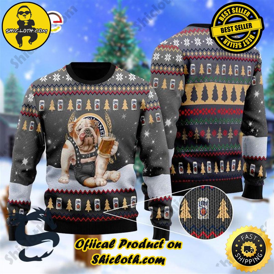 Bulldog Drink Lite Beer Christmas Beer Sweater