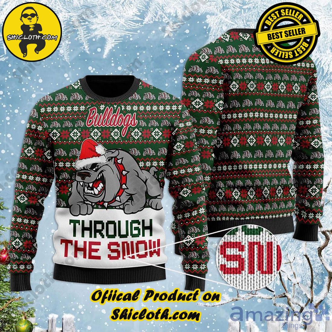 Don’t miss out on this must-have Christmas sweater – order yours today and let the Bulldogs Through The Snow Christmas Ugly Sweater become the highlight of your holiday attire!