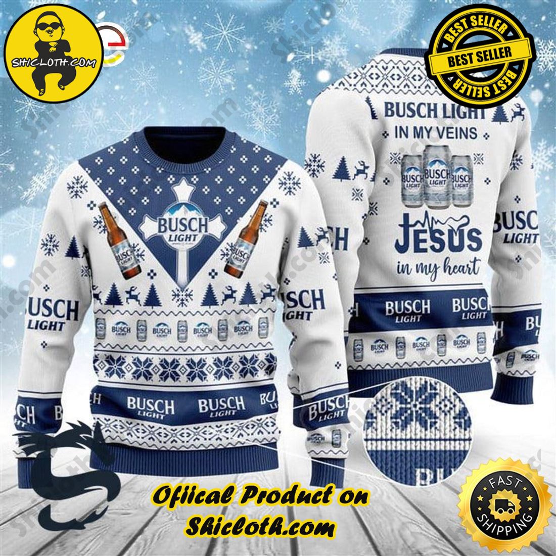 Busch Light In My Veins Jesus In My Heart Ugly Beer Sweater