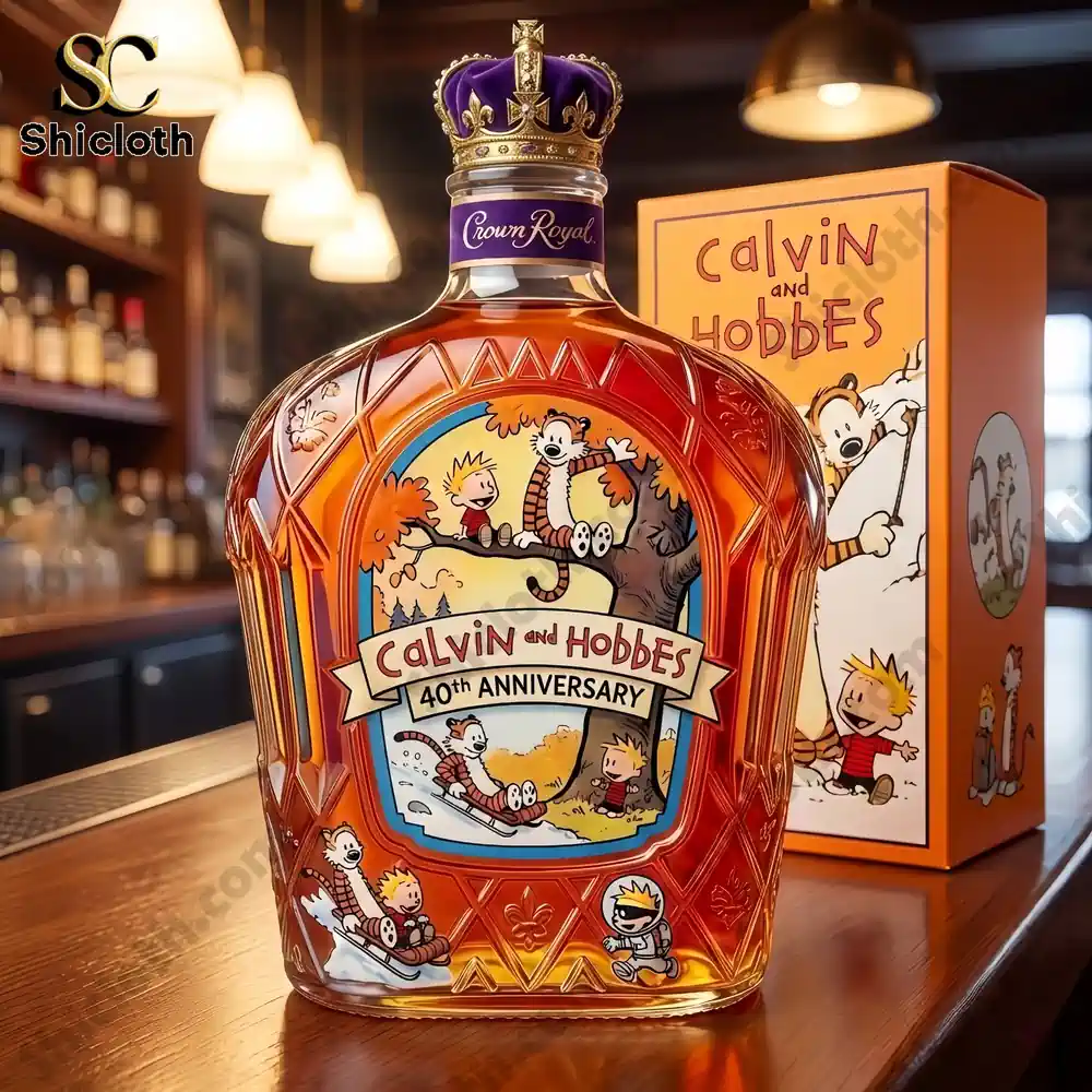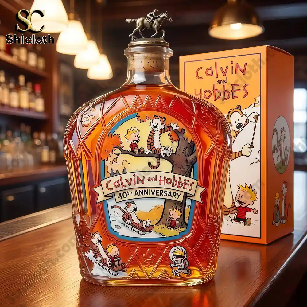 The Calvin and Hobbes 40th Anniversary Commemorative Whiskey Bottle is a nostalgic masterpiece designed for fans who want to blend high-end spirits with the timeless charm of Bill Watterson’s iconic comic strip. This limited-edition collector’s item features a vibrant, wrap-around graphic of Calvin and Hobbes enjoying their classic adventures, such as sledding and lounging in trees, all set against a rich amber whiskey backdrop. Whether you are a long-time reader or a whiskey enthusiast, this bottle serves as a stunning centerpiece that brings a touch of childhood whimsy to any professional home bar setup.