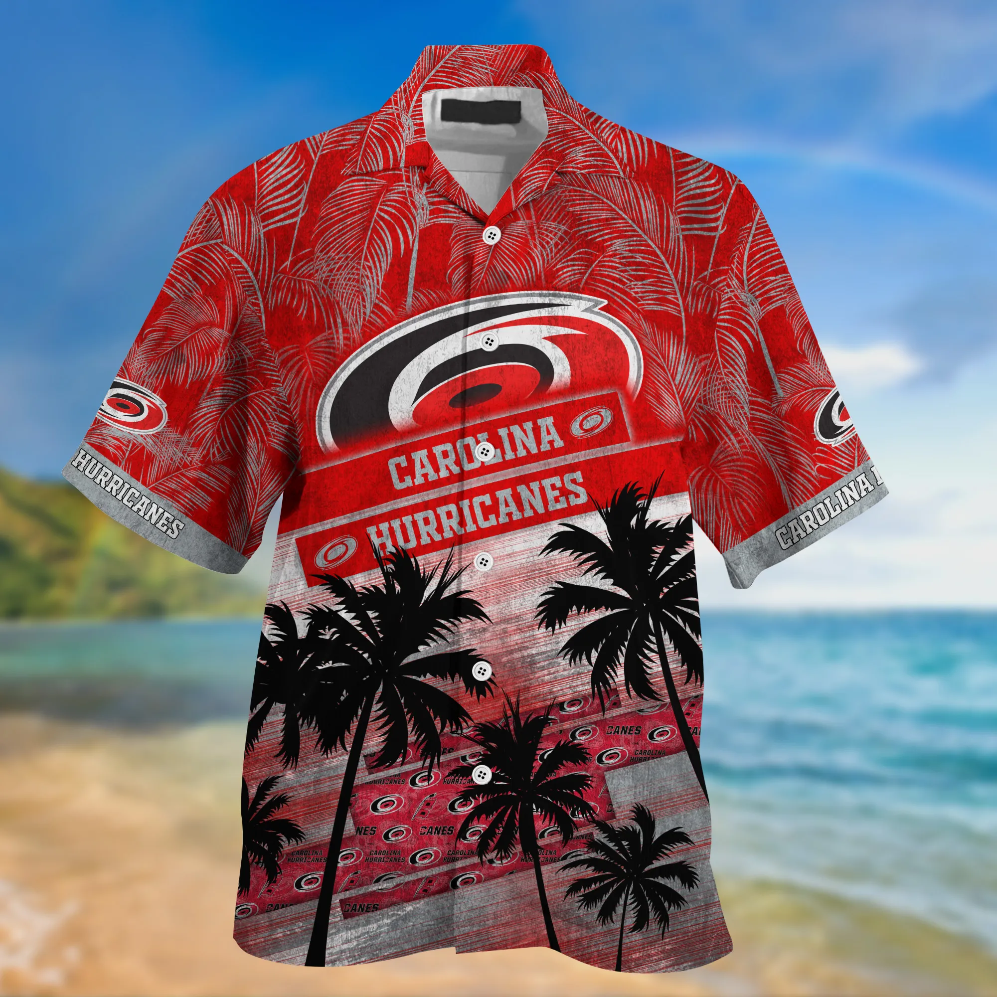 Carolina Hurricanes NHL Palm Tree Pattern Hawaii Shirt For Sports Fans Unisex Sport Hawaii Shirt
