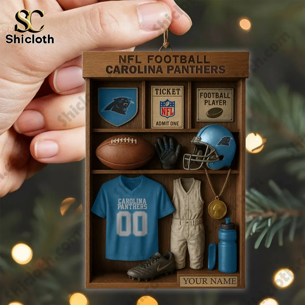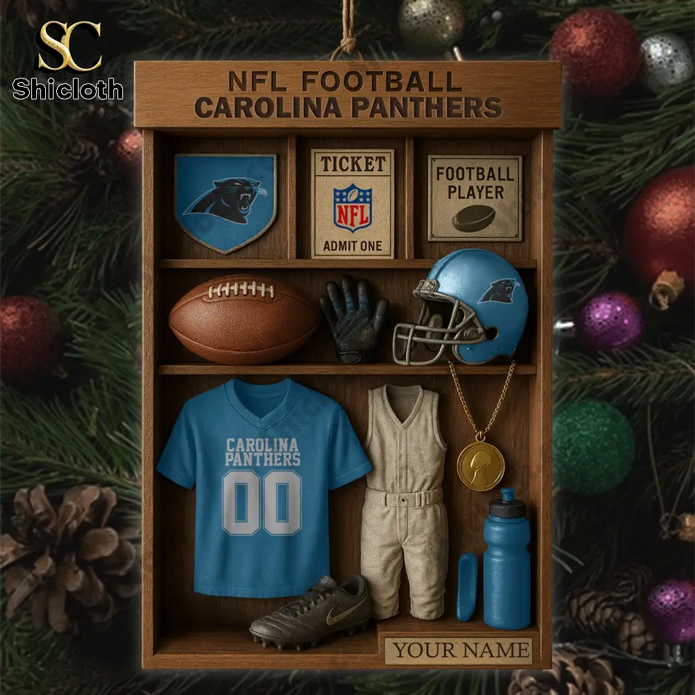This unique Carolina Panthers NFL Football Locker Ornament is the perfect way to bring your team pride to your Christmas tree or home decor. It’s not just a decoration; it’s a miniature, personalized shrine to your love for the Panthers! This highly customizable ornament is shaped like a classic wooden locker shelf display, meticulously designed with a shadow-box effect, and includes tiny, detailed football gear in the team’s signature colors. It makes an excellent, thoughtful gift for any die-hard fan in your life, whether for the holidays, a birthday, or just to celebrate their fandom.