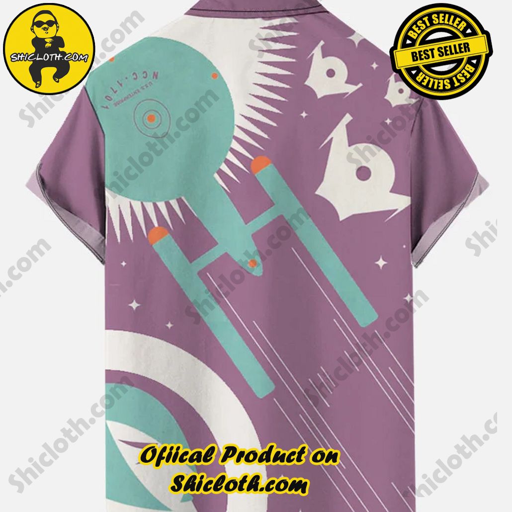 - Suitable for special occasions such as Christmas, birthday, celebration, housewarming gift. Cartoon Retro Purple Magic Space And Cyan Spaceship Silhouette Printing Short Sleeve Shirt