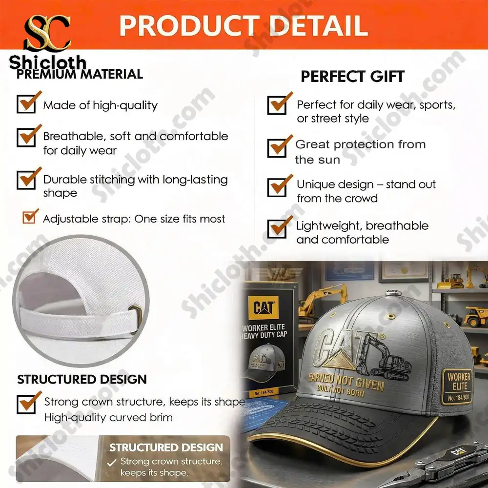 Caterpillar Worker Elite Heavy Duty Earned Not Given Built Not Born Cap Hat