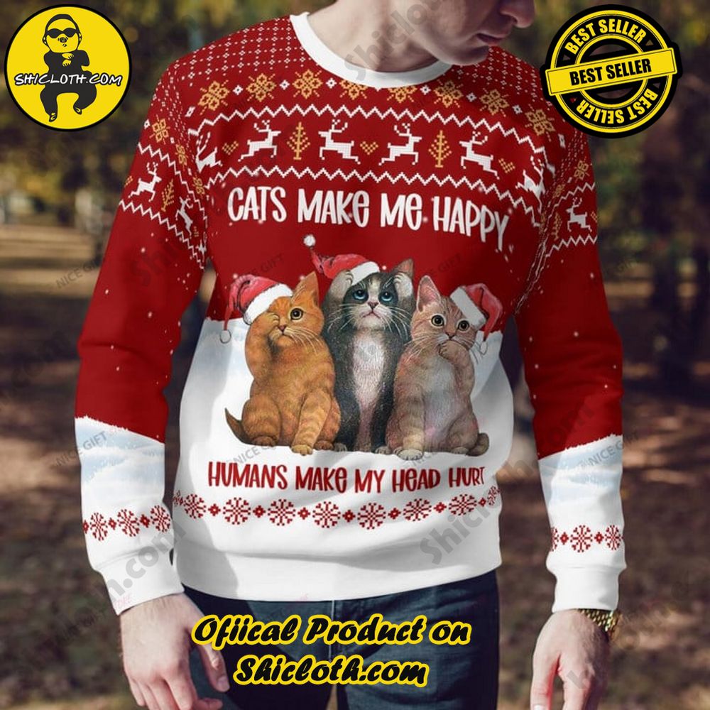 Cats Make Me Happy Humans Make My Head Hurt Christmas Ugly Sweater