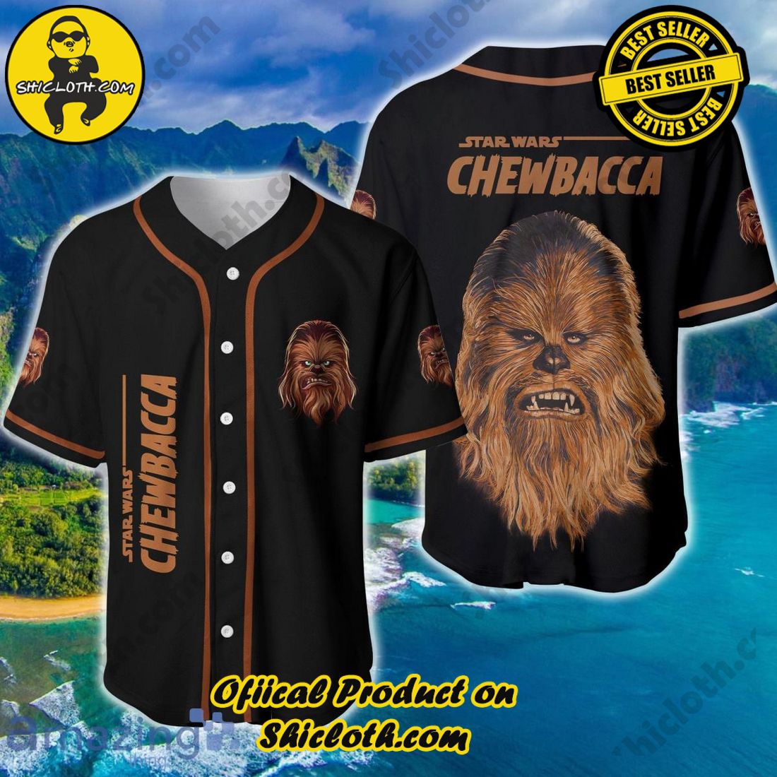 From the grand stadiums to the cozy neighborhood ballparks, the sight of fans proudly sporting their team’s colors is a testament to the deep connection between baseball and its enthusiasts. Whether you’re a seasoned baseball aficionado or a newcomer to the game, an MLB jersey is a timeless symbol of unity and camaraderie.Chewbacca Star Wars Black Brown Disney Baseball Jersey Each jersey tells a unique story, emblazoned with the team’s emblem, colors, and player numbers. From the storied franchises with decades of championship victories to the up-and-coming teams ready to make their mark, every MLB jersey carries a legacy.