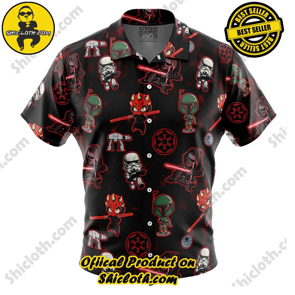 Chibi Sith Galactic Empire Star Wars Pattern Button Up Hawaiian Shirt