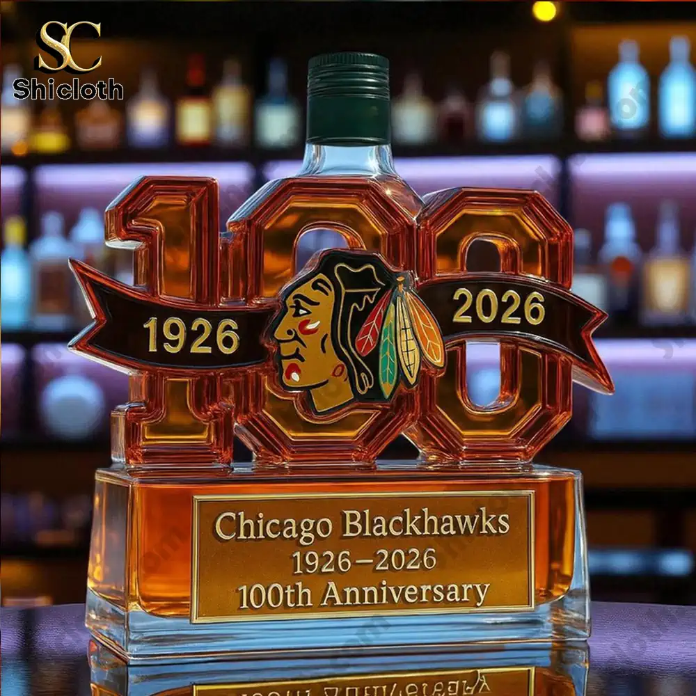 Hey Blackhawks fans, get ready to celebrate 100 years of hockey history! This amazing Limited Edition whiskey bottle is designed to honor the Chicago Blackhawks’ 100th Anniversary (1926-2026). It’s the ultimate collector’s item for your home bar and the perfect gift for the holidays. It is shaped like the number 100 and even comes with options for a cool, iconic whiskey-style cap.