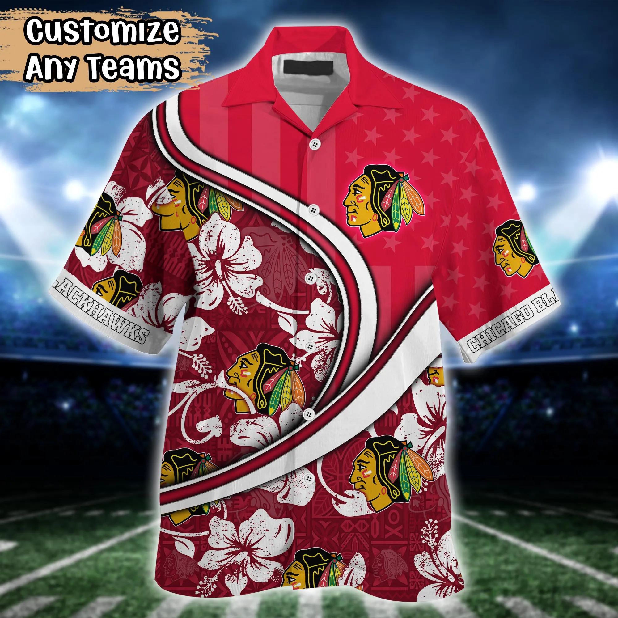 Chicago Blackhawks NHL Us Flag Hawaiian Shirt Custom Summer Aloha Shirt
