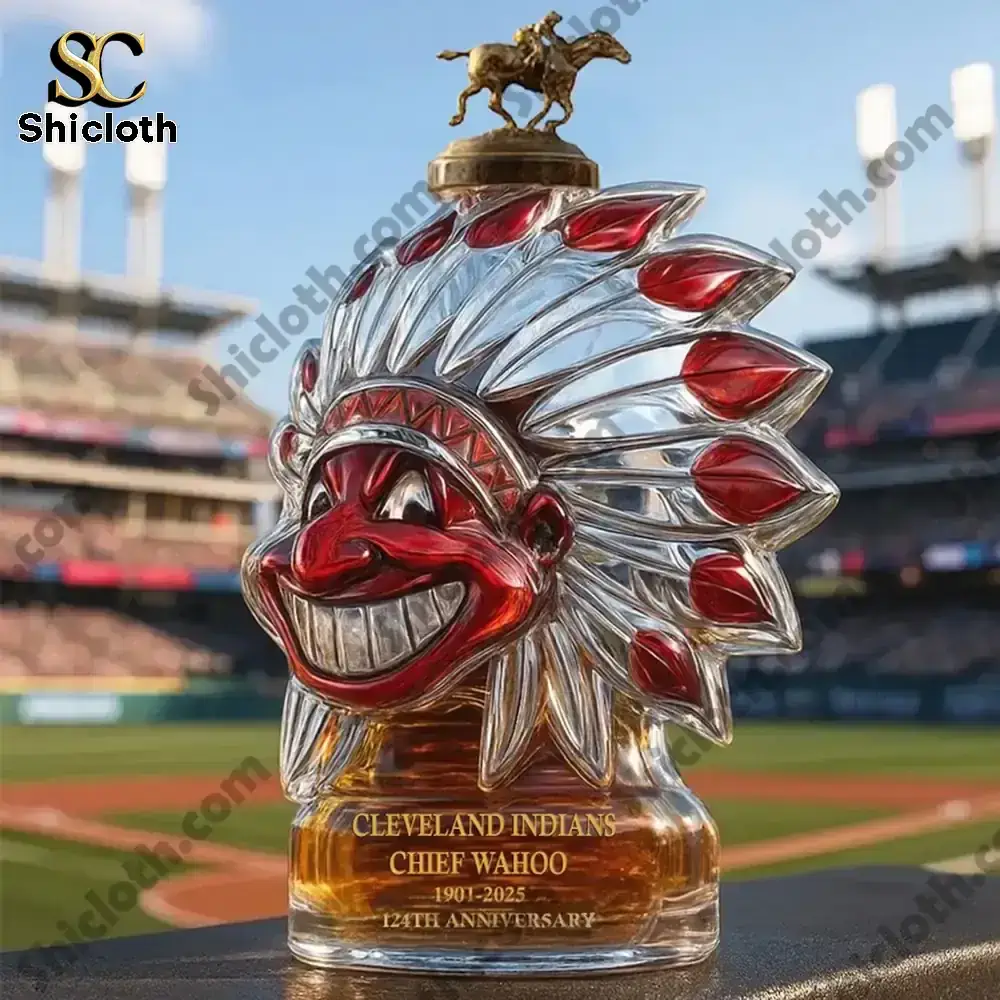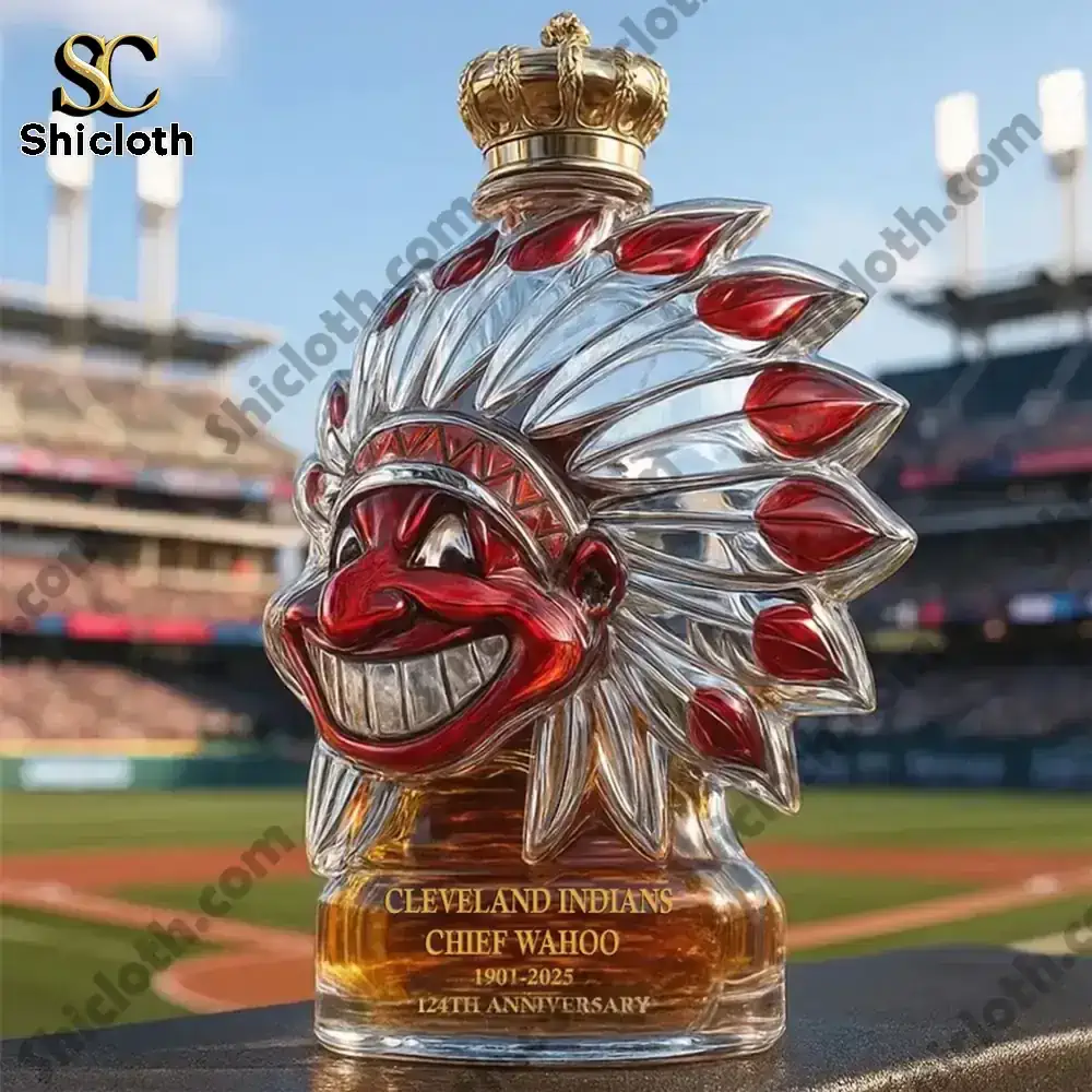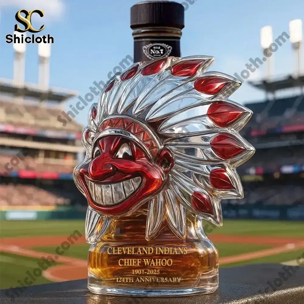 The Chief Wahoo 124th Anniversary Christmas Whiskey Bottle is a vibrant fusion of sports history and premium craftsmanship, designed specifically for Cleveland baseball fans and collectors. This limited-edition glass decanter celebrates the legacy of the team with a bold, 3D sculpted design that functions both as a centerpiece for your home bar and a versatile container for your favorite spirits. Whether you are looking for a unique Christmas gift or a standout piece of sports memorabilia, this bottle offers a “pop” of personality that captures the spirit of the game.