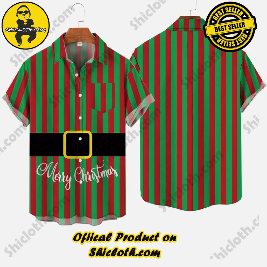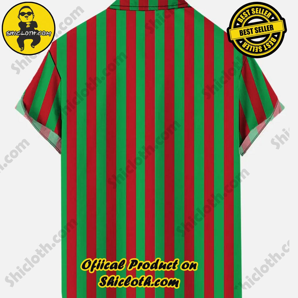 Christmas Elements Retro Red And Green Striped Elf Cartoon Costume Printing Breast Pocket Short Sleeve Shirt