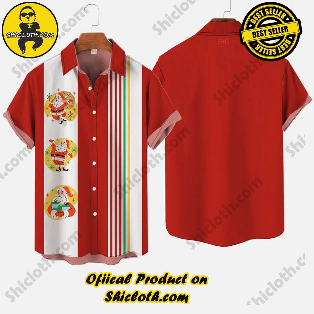 Christmas Elements Retro Trendy Red And White Matching Christmas Santa Gnomes Printing Short Sleeve Shirt