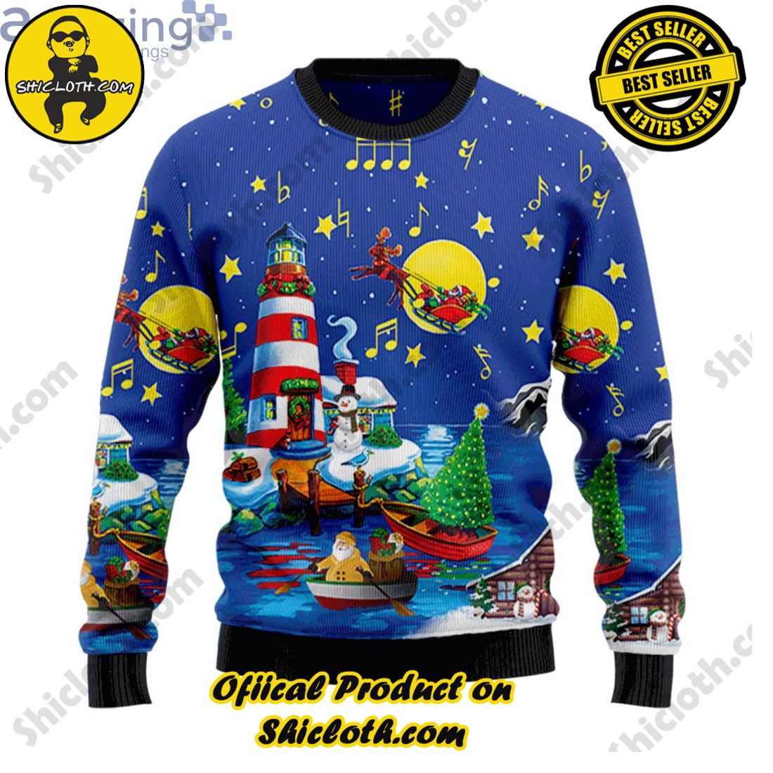 Christmas Lighthouse Scene Full Of Popular Symbols Christmas Ugly Sweater