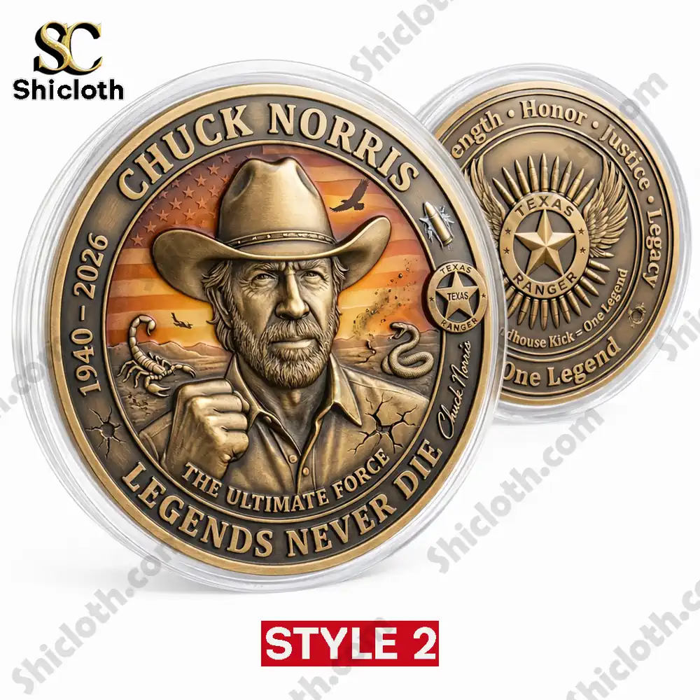 If you are looking for a unique tribute to a martial arts icon, the Chuck Norris “Legends Never Fade” Memorial Coin is a perfect choice for collectors and fans alike. This high-quality commemorative piece captures the essence of the Texas Ranger legend through two distinct styles: a rugged antique bronze finish that evokes a classic Western feel and a sleek polished silver edition with gold-plated accents for a modern, premium look. Each coin serves as a durable piece of history, honoring the “The Ultimate Force” with intricate craftsmanship that stands out in any display or everyday carry collection.