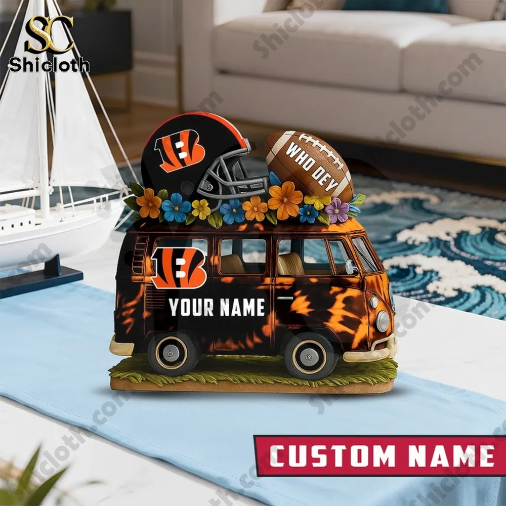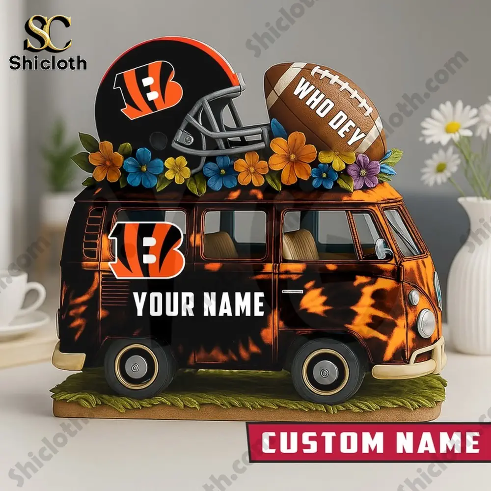 Showcase your team spirit with this custom Cincinnati Bengals Van Bus Acrylic Plaque, a unique piece of home decor that blends retro vibes with modern fan passion. Whether you are looking to treat yourself or find the perfect gift for a fellow fan, this personalized plaque stands out as a high-quality tribute to the Who Dey nation.