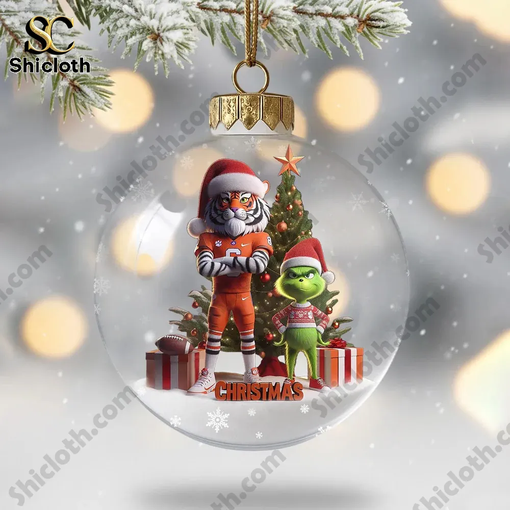 Product Information: Clemson Tigers Grinch Christmas Acrylic Ornament