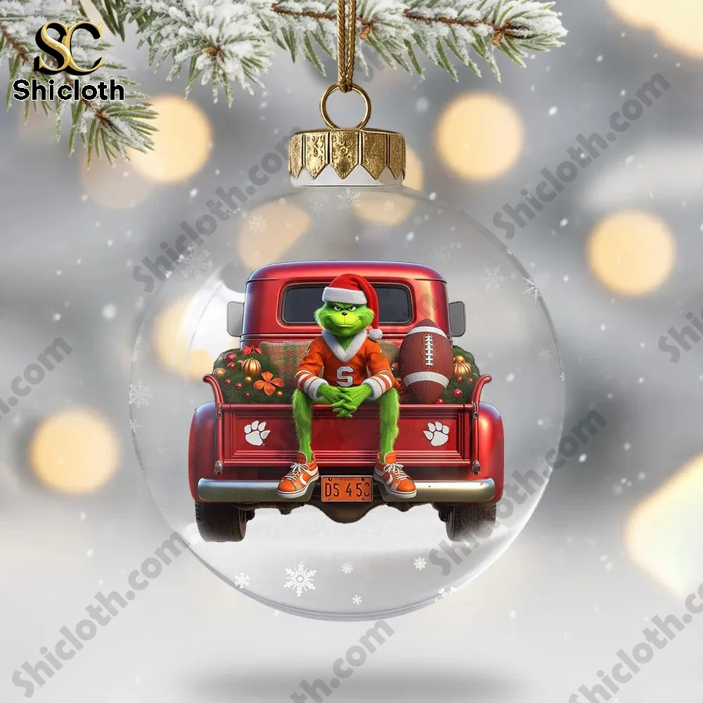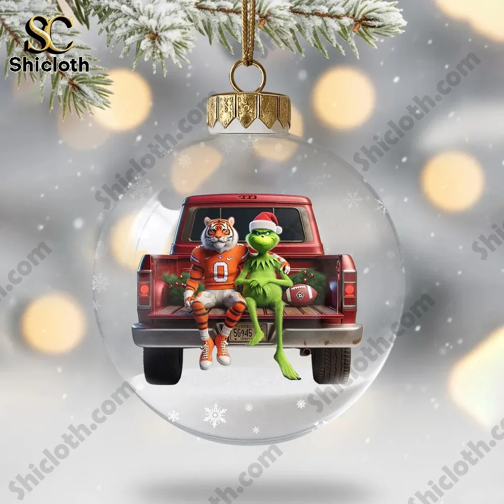 Looking for the perfect way to combine your Clemson Tigers pride with some holiday mischief? This Clemson Tigers Grinch Christmas Acrylic Ornament is the answer! It features fun, festive scenes inside a clear, hanging ornament, bringing together the beloved Grinch and the spirited Clemson Tiger mascot in various poses. Whether they are sitting on the back of a red pickup truck, surrounded by Christmas trees and gifts, or decked out in Santa hats and team colors, these ornaments capture the best of holiday fun and college football spirit. With its clear acrylic, vibrant images, and snowy backdrop, it’s a truly unique piece of holiday decor.