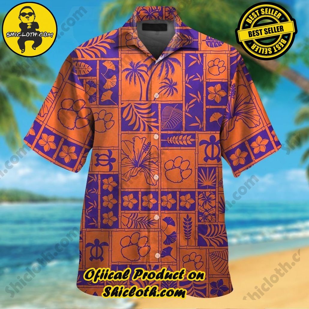 Clemson Tigers Short Sleeve Button Up Tropical Hawaiian Shirt VER030