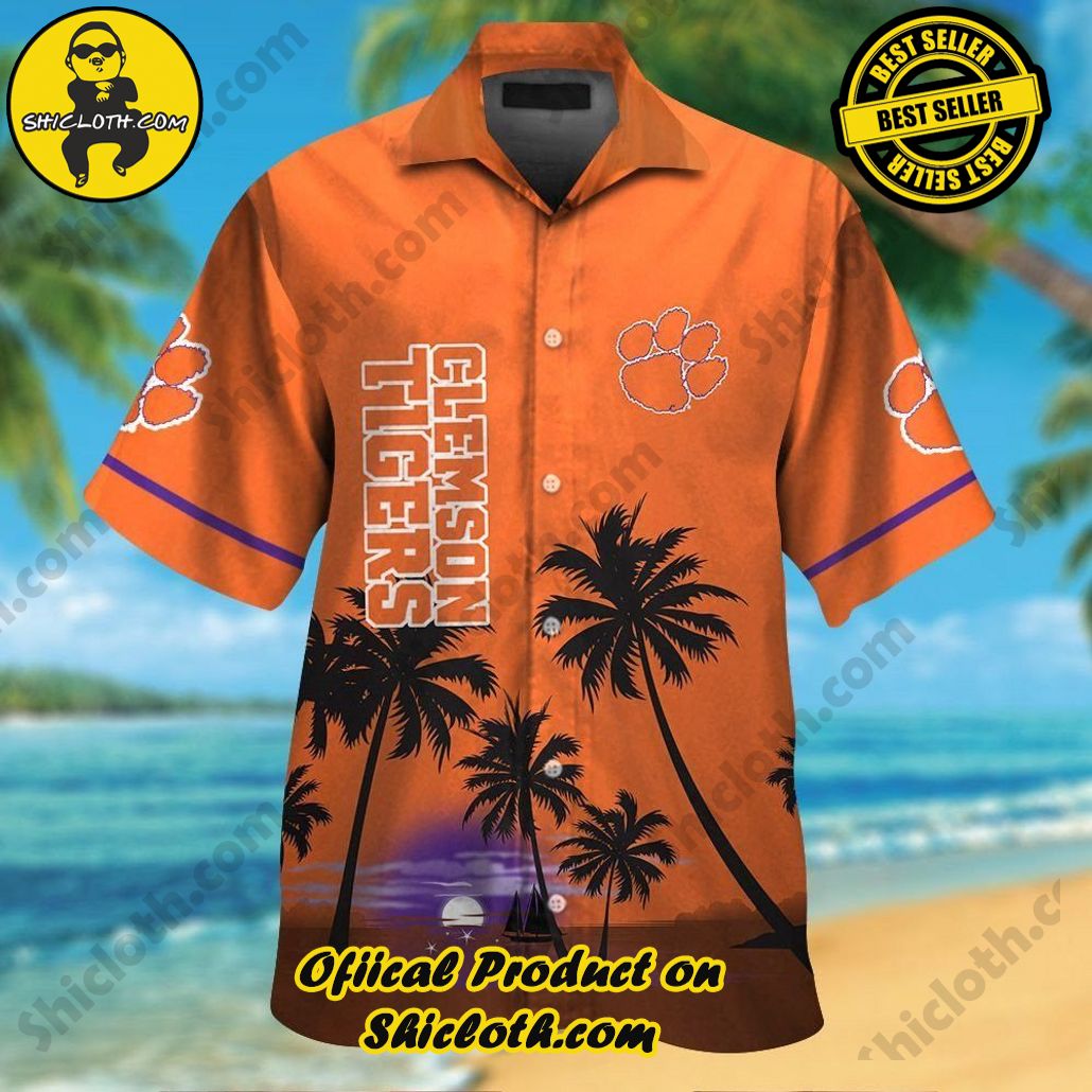 Clemson Tigers Short Sleeve Button Up Tropical Hawaiian Shirt VER09